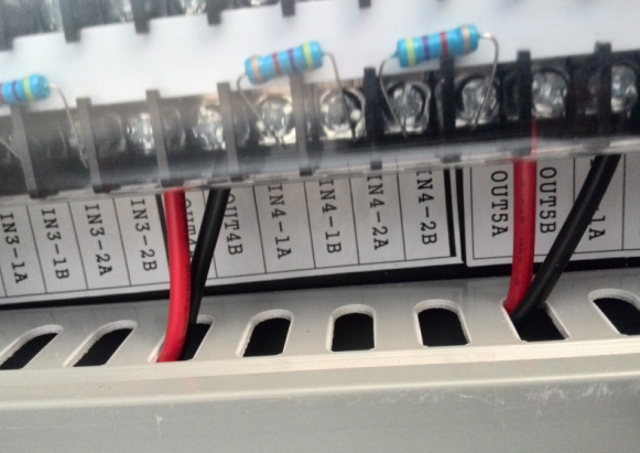 輸出模塊的音源線(AC120V)嚴禁與二總線(DC28V)混接,會造成設(shè)備燒損。