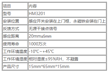 二、HM3201門(mén)磁開(kāi)關(guān)技術(shù)參數(shù)