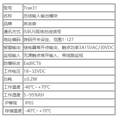 三、Trax31總線輸入輸出模塊技術參數(shù)