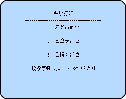 在主菜單下,按“4”進入系統打印菜單,顯示如下: