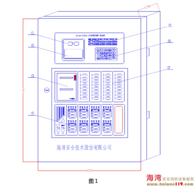 JB-QB-GST200火災報警控制器(聯動型)的外觀示意圖及內部結構圖如圖1、圖2所示: