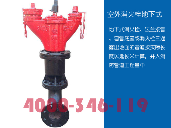 地下式:地下式消火栓、法蘭接管、彎管底座或消火栓三通 露出地面的管道按實際長度以延長米計算,并入消防管道工程量中! 管道安裝按設(shè)計管道中心長度,以“m”為計量單位,不扣除閥門、管件及各種組件所占長度